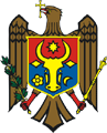el escudo de armas de Moldova consiste en un escudo dividido horizontalmente en dos partes: la parte superior es roja, y la parte inferior es azul con la exposición delantera de un uro sobrepuesto. Entre sus cuernos hay una puntiaguda estrella de ocho puntos. La cabeza del uro tiene alrededor cinco símbolos: la rosa con pétalos, sol, dos rombos y una media luna ligeramente girada. Todo el presente de elementos heráldicos sobre el escudo de color (amarillo) de oro. El escudo está puesto sobre el pecho de un águila y en su rotura está una cruz de oro. En su derecha, agarra una rama de aceitunas verdes y en su garra (uña) izquierda un cetro de oro.